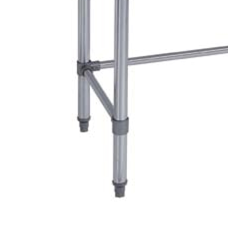 Adjustable stainless steel shelf fits under the table and provides additional